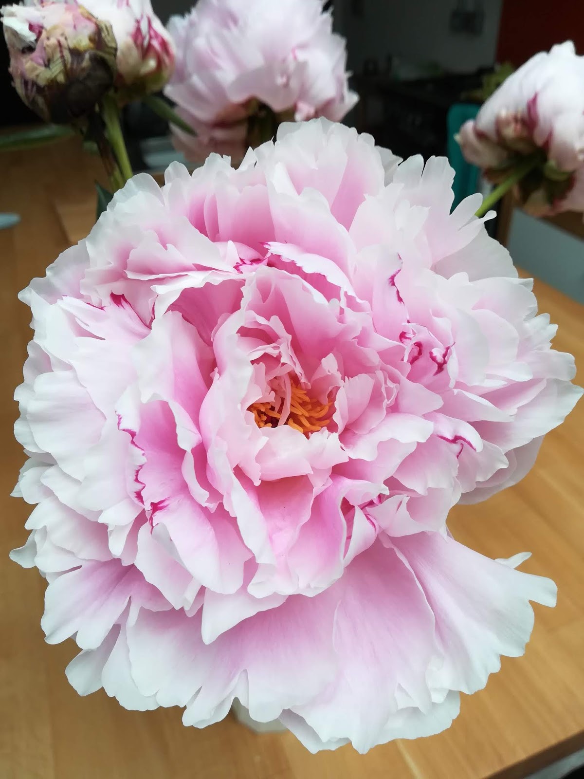 Peonies are looking magnificent right now. I just love them, don't you? These are my next-door neighbour's, a stunning white, double flowered variety. Their little girl wanted her Dad to pick one for her hair. I wouldn't mind one of these stuck behind my ear either.